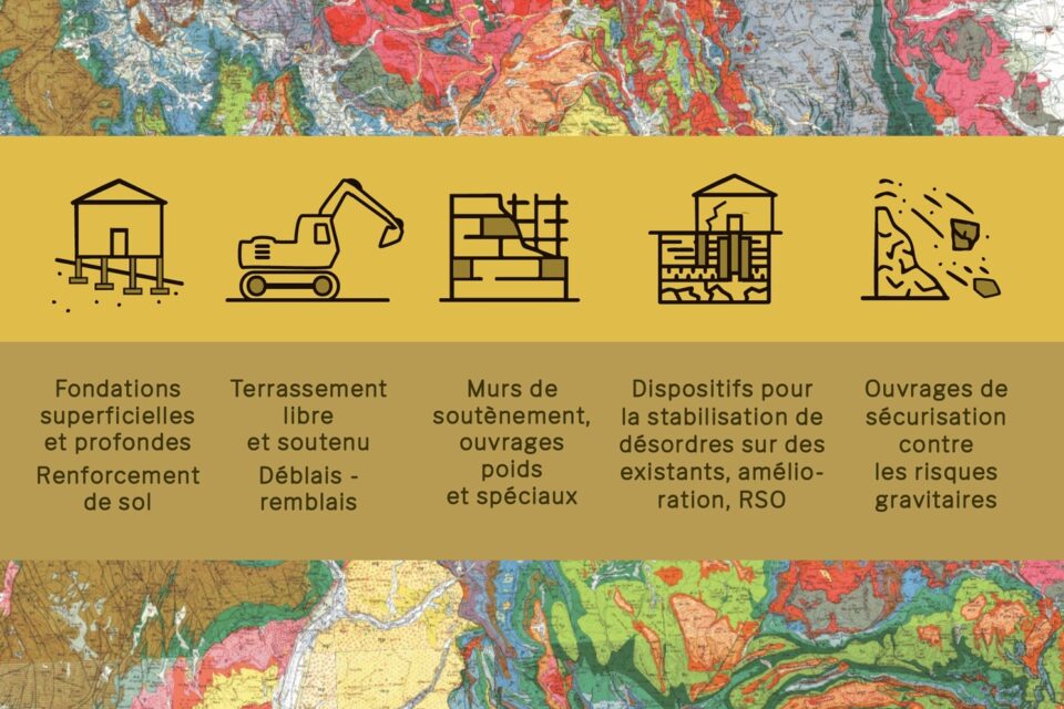 Cette mission d’exécution est à charge de l’entreprise réalisatrice des travaux. On y réalise le dimensionnement géotechnique final des ouvrages et le suivi sur chantier : terrassements déblais, remblais, stabilité de talus, fondations superficielles, fondations profondes, mur de soutènement, travaux spéciaux, ouvrages de protection contre les risques naturels…