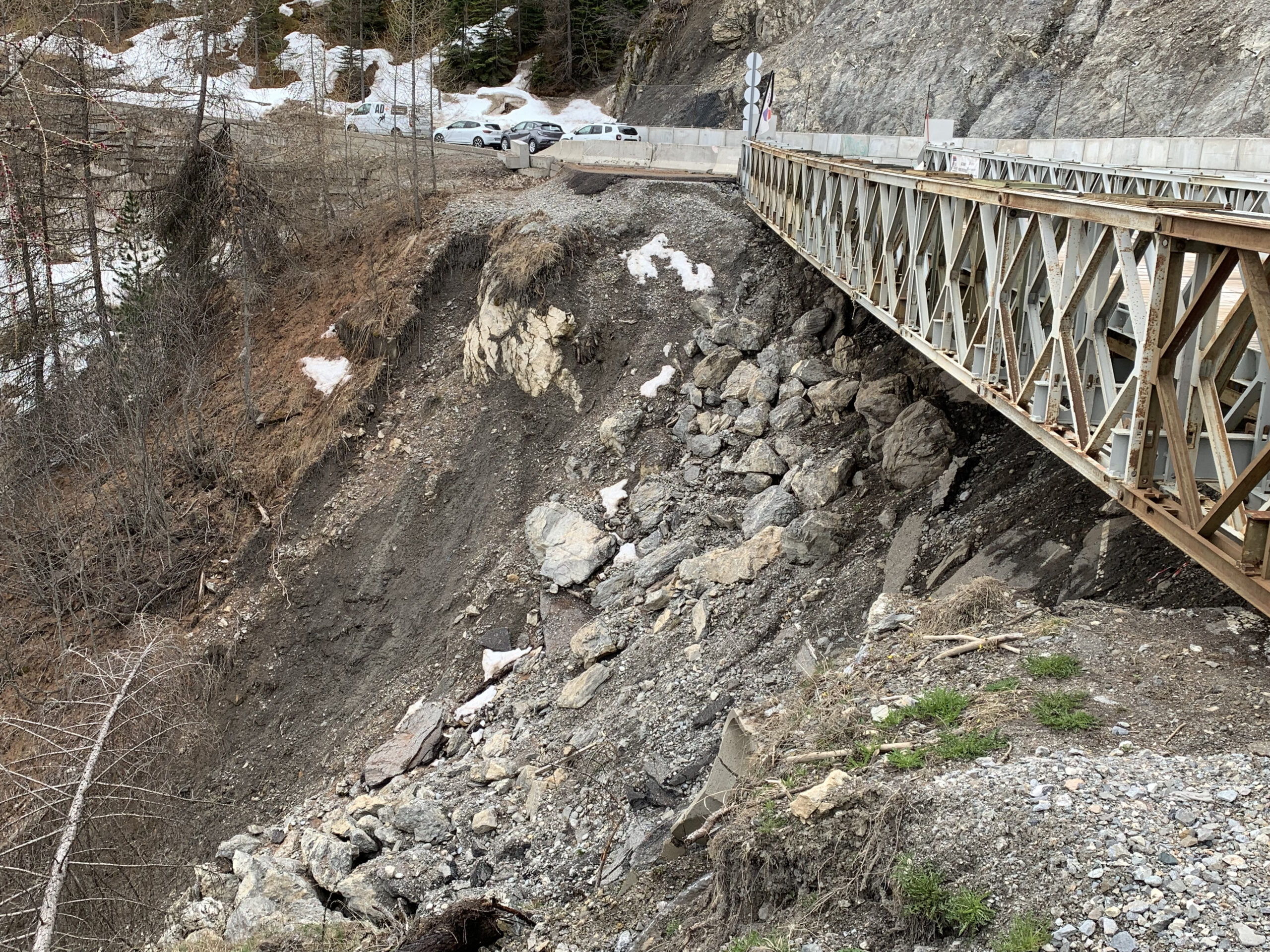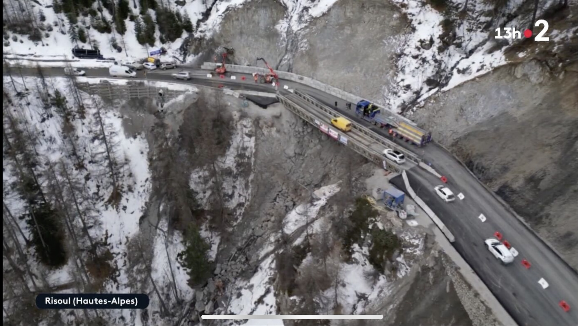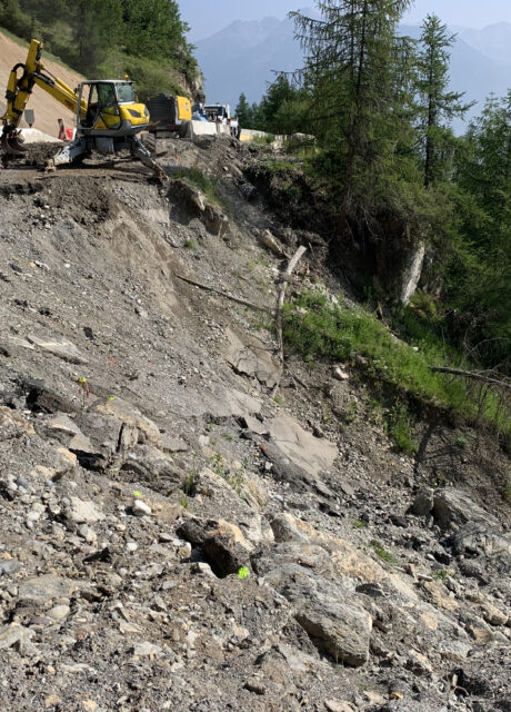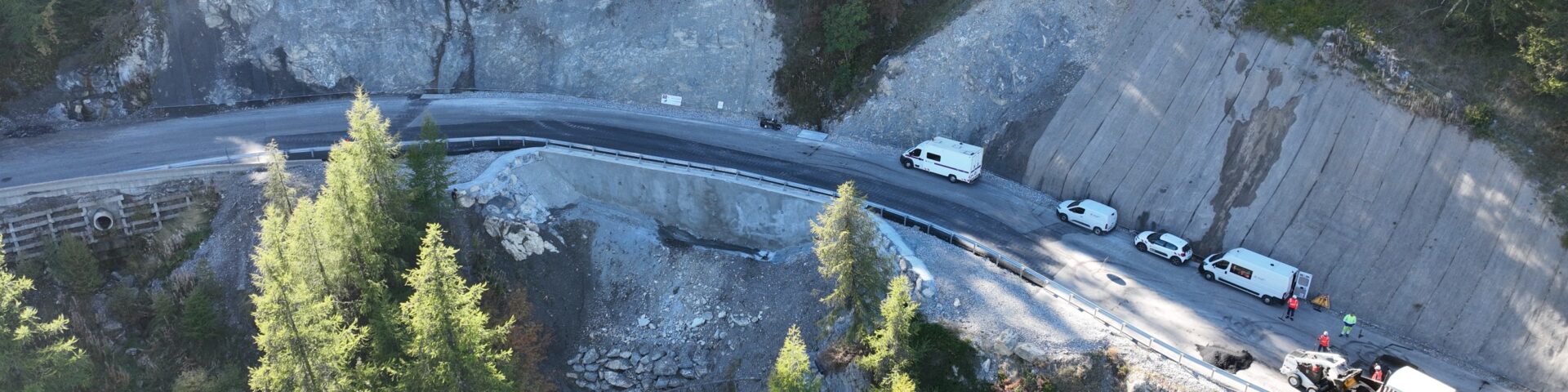 Intervention sur la route départementale 186 qui mène à la station de Risoul 1850, afin d’assurer le suivi des travaux de confortement entrepris suite aux intempéries de décembre 2023