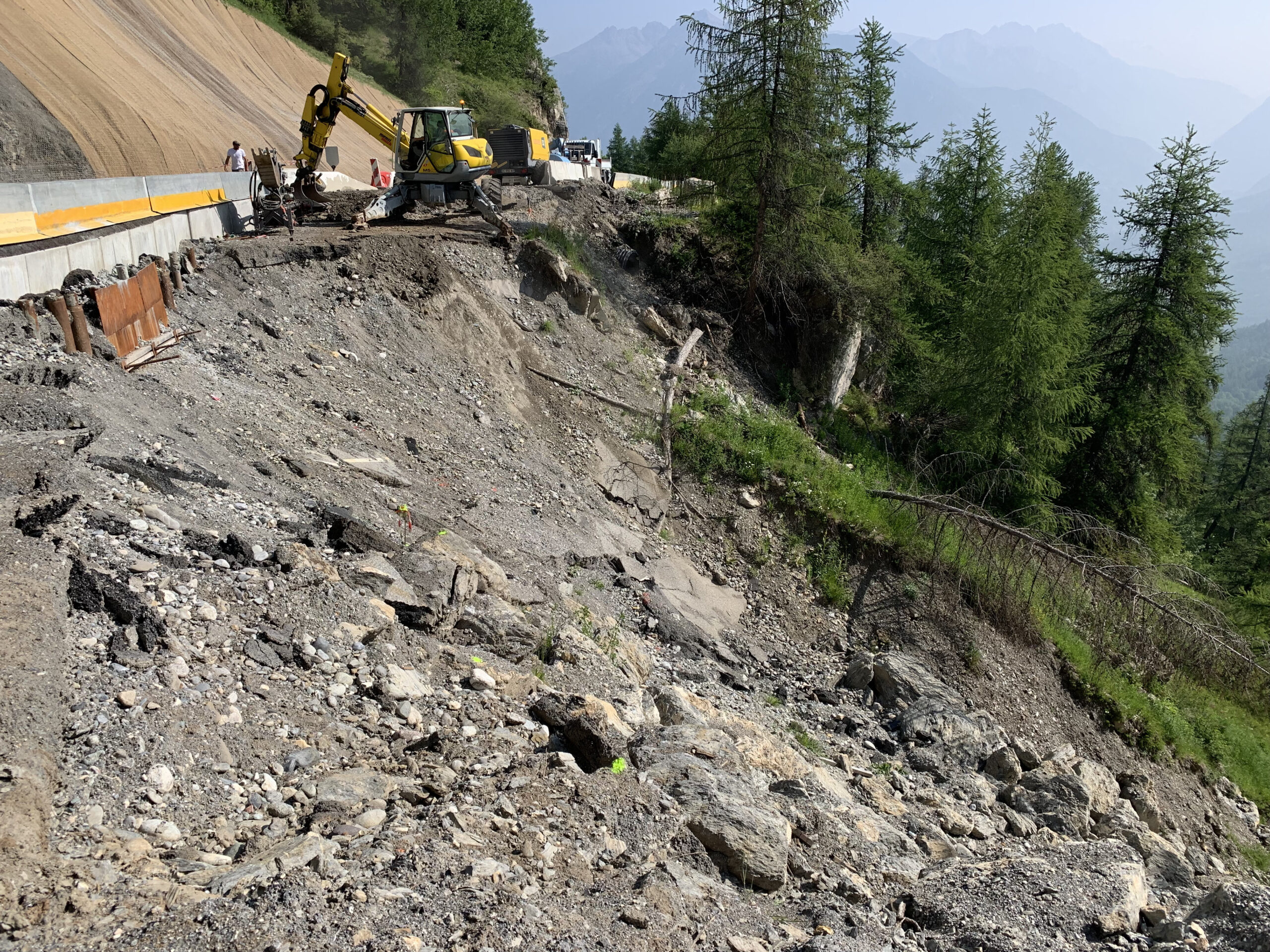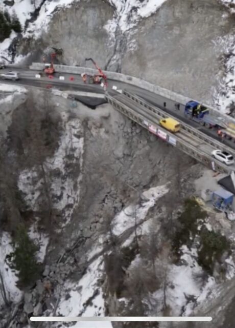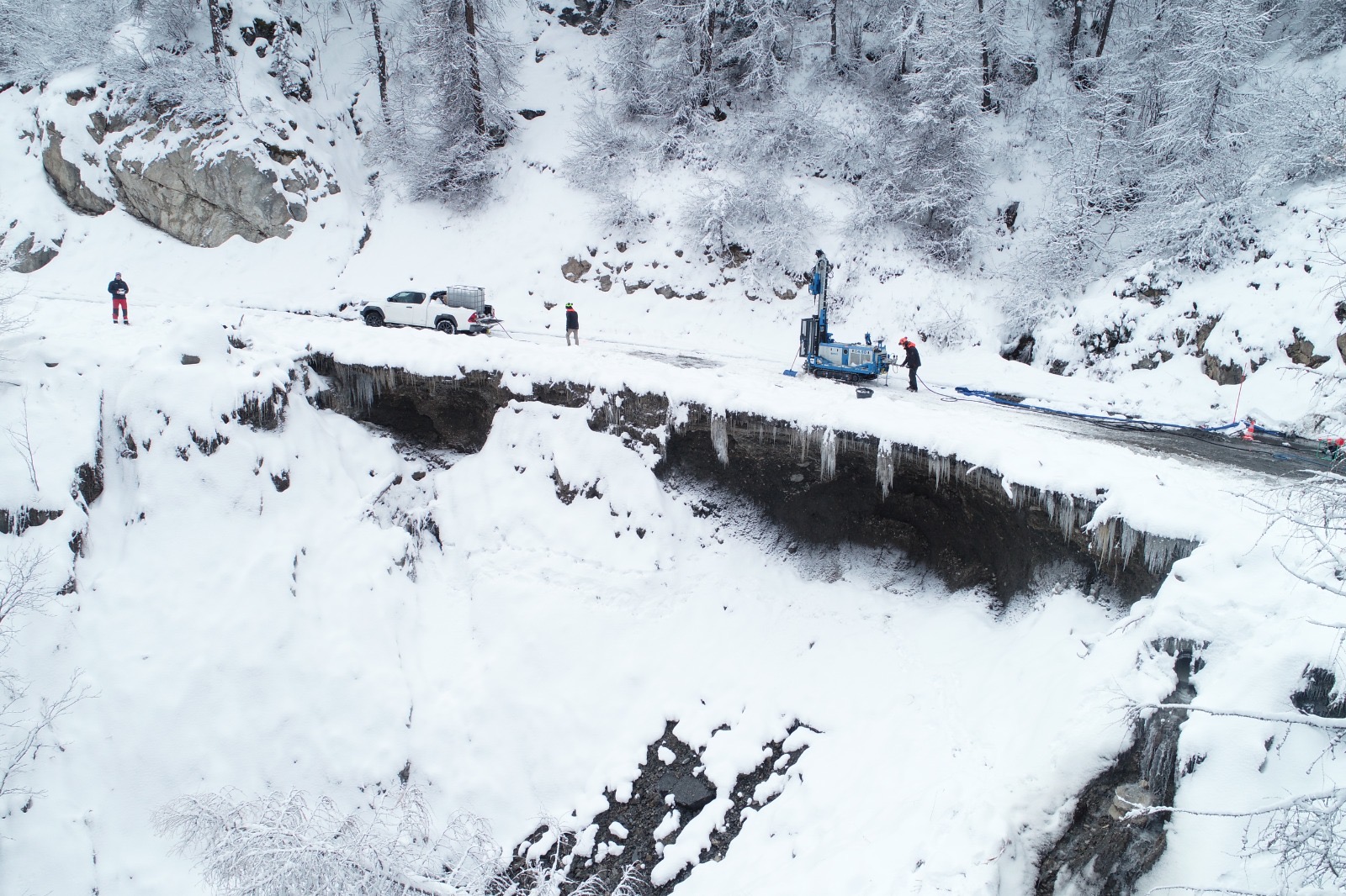 Intervention sur la route départementale 186 qui mène à la station de Risoul 1850, afin d’assurer le suivi des travaux de confortement entrepris suite aux intempéries de décembre 2023